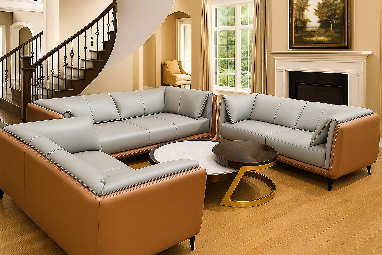 Upgrade your living room with this Premium Leatherette Sofa Set, an elegant and functional seating solution designed for modern homes. Featuring a stylish two-tone finish—soft grey cushions combined with a rich tan brown exterior—this 3+2+2 sofa set adds a refined touch to any interior.